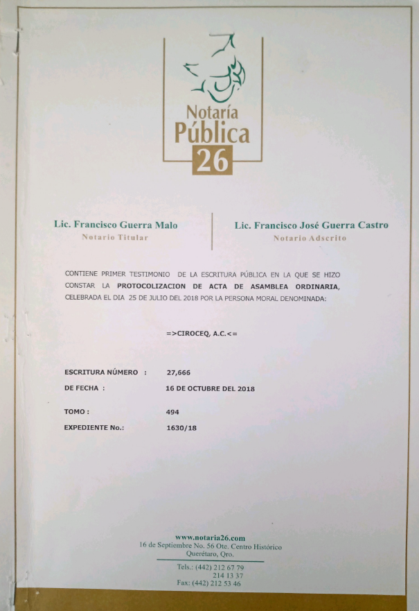 CONSTITUCION DE LA ASOCIACIÓN DENOMINADA " CIROCEQ, A.C."